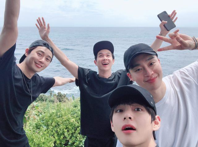 이 사진은 BTS 뷔가 올린 사진 여기에도 최우식, 박서준, 픽보이가 휴가를 보내고 있는 사진이에요