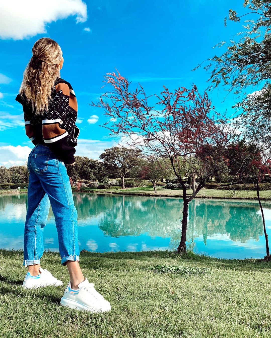 먼저 올라온 사진은 멋진 호수와 공원에서 여유있게 휴식을 취하는 사진이었어요.