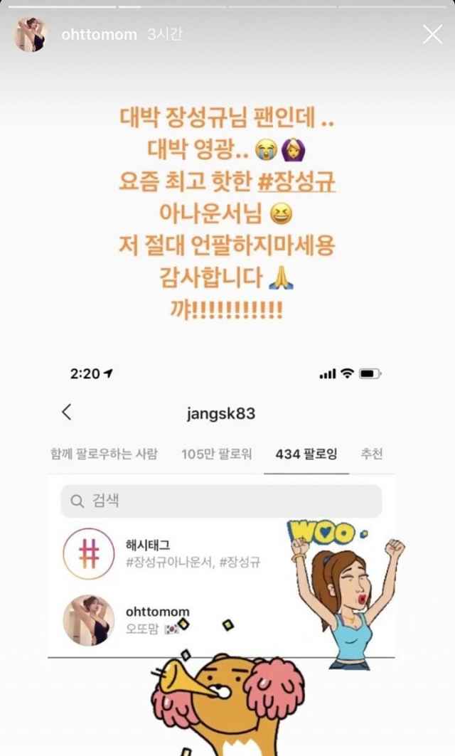 방송인 장성규님이 인스타그램 오또맘 님을 팔로우 했나보네요.