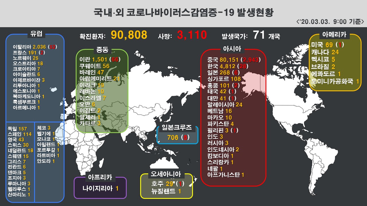 신종 코로나바이러스감염증 환자 총 90,808명(사망 3,110명)